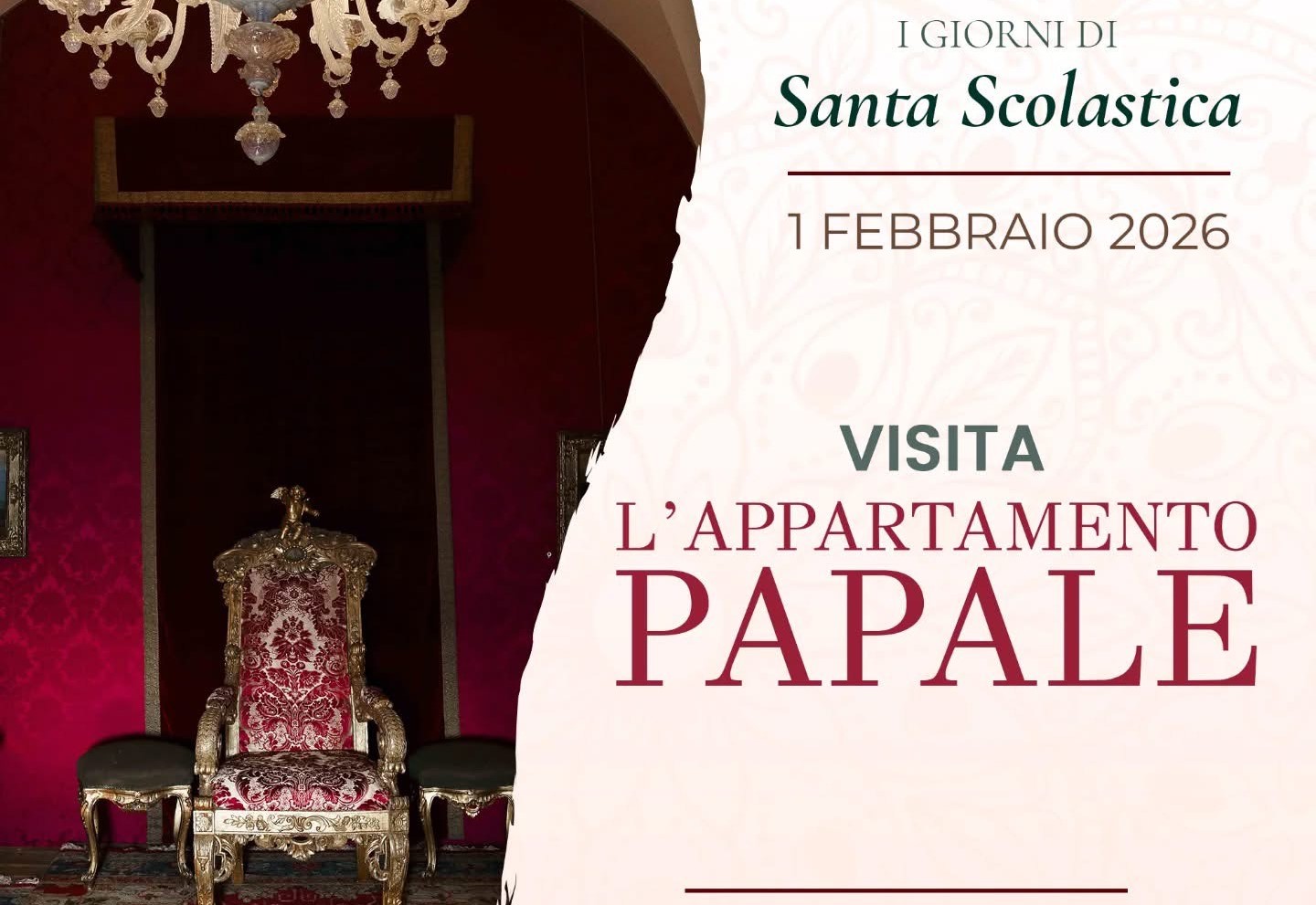 Per la prima volta in via esclusiva, l’Abbazia di Montecassino aprirà al pubblico le porte dello storico Appartamento Papale. A partire da domenica 1° febbraio, liberamente, e per tutto il resto mese su prenotazione, sarà possibile visitare questo luogo dal fascino senza tempo, impreziosito da decorazioni, quadri e arredi d’epoca.
