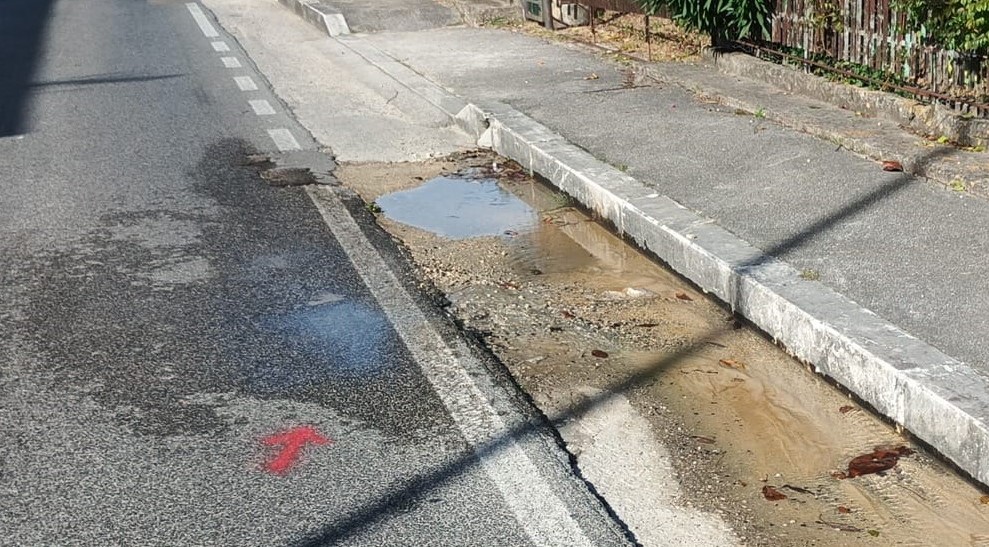 Non da oggi e neppure da ieri. Un intervento appare necessario ed opportuno. Non osiamo dire tempestivo. Comunque se ne sono resi conto e la perdita è indicata con una freccia rossa sull’asfalto.