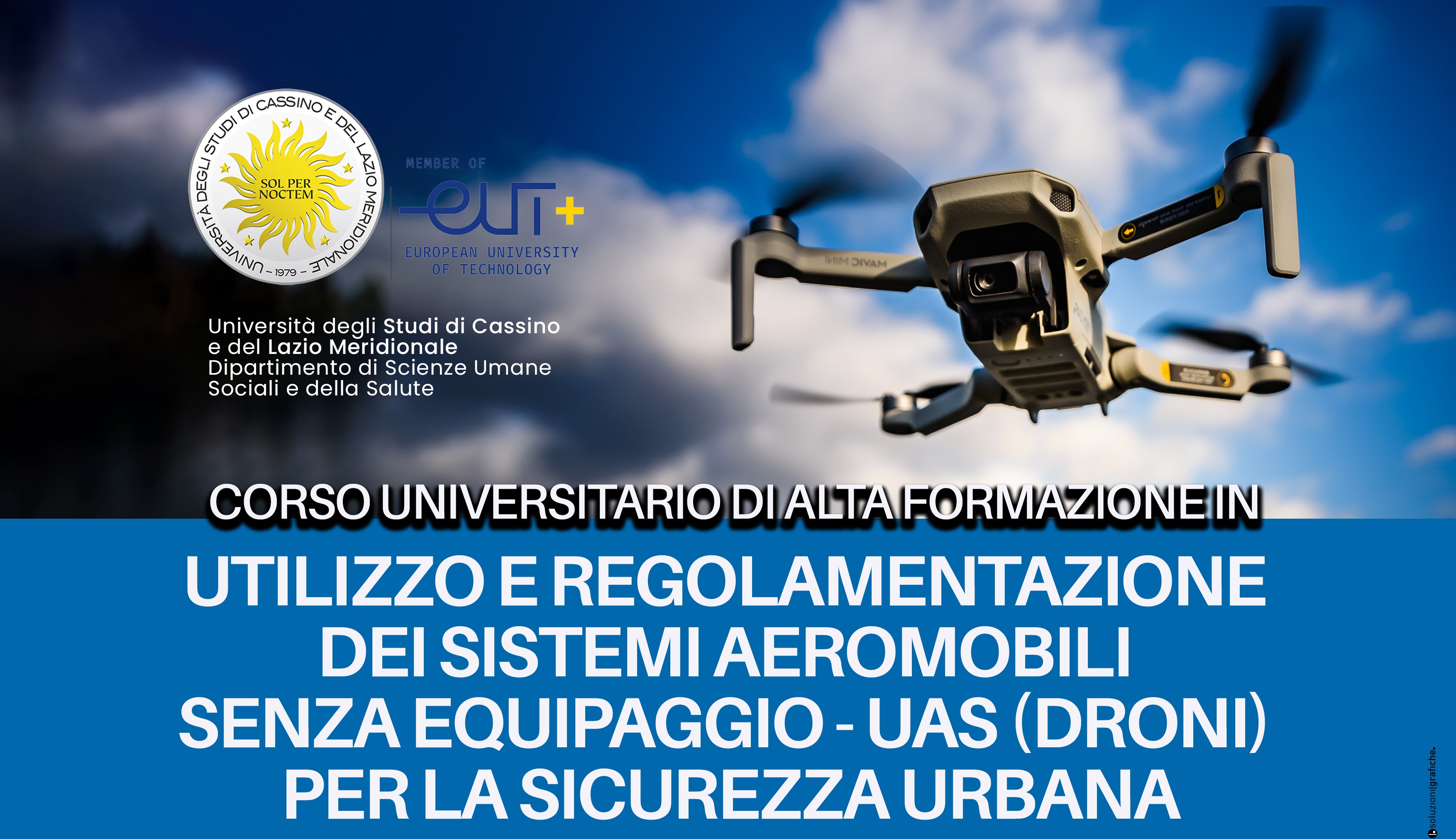 Sono aperte le iscrizioni al Corso Universitario di Alta Formazione in “Utilizzo e regolamentazione dei sistemi aeromobili UAS (droni) per la sicurezza urbana”. Un percorso formativo innovativo, unico nel panorama nazionale, nato per formare professionisti capaci di operare legalmente ed efficacemente a supporto delle Forze di Polizia e degli Enti locali. Il Corso è l’evoluzione naturale delle attività di ricerca condotte dal Laboratorio di Ricerca Sociale – Unicas, attraverso l’Osservatorio di Sociologia della Sicurezza Urbana.