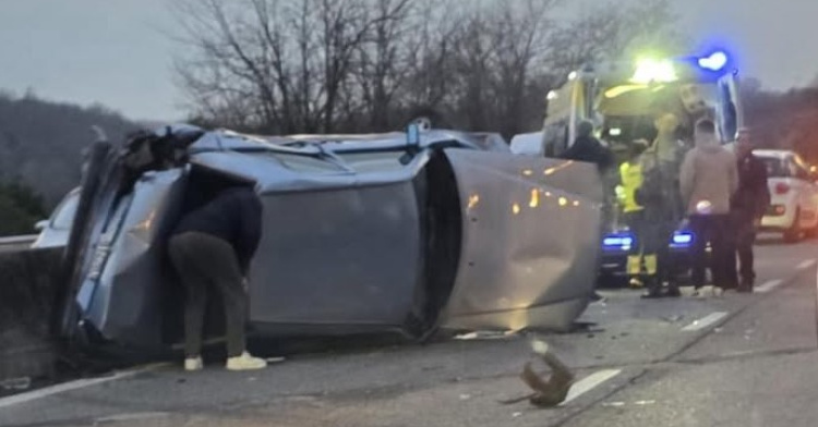 VEROLI - AUTO SI RIBALTA IN SUPERSTRADA