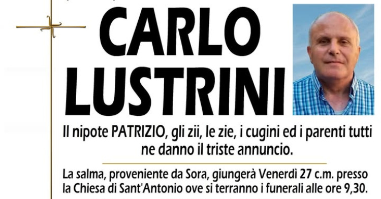 Commozione a Isola Liri per la morte di Carlo Lustrini, avvenuta stanotte presso l’Ospedale SS. Trinità di Sora, dove era ricoverato. Aveva 62 anni e amava fare lunghe passeggiate in Città con l'inseparabile nipote Patrizio. I funerali saranno celebrati domani, venerdì 27 marzo, alle ore 9:30…