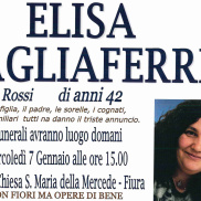 Presso l’Ospedale di Frosinone, è morta Elisa Tagliaferri, giovane mamma di 42 anni, colta da un malore mentre era in casa, inutili i soccorsi. I funerali si terranno domani, mercoledì 7 gennaio alle ore 15.00 presso la Chiesa di Santa Maria della Mercede, in località Fiura di Alatri. Ai familiari le condoglianze dalla redazione del nostro sito.
