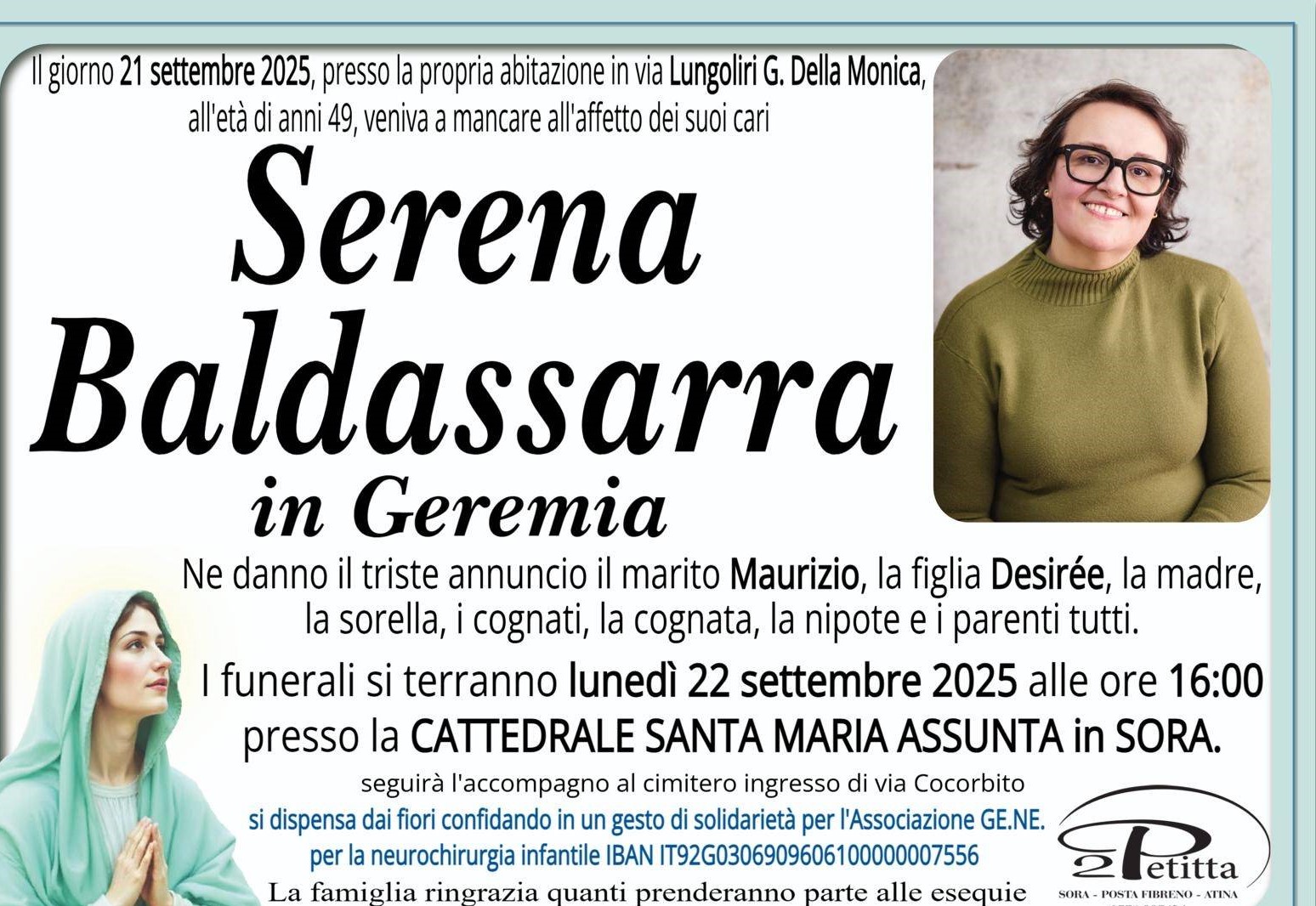 Questa mattina a Sora, nella sua abitazione, si è spenta la 49enne Serena Baldassarra, in Geremia. La donna, aveva 49 anni, era molto conosciuta e stimata per le sue apprezzate creazioni e per la sua attività al Lungoliri Sesyderi.