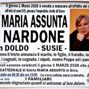 Grande commozione a Sora per la scomparsa di Maria Assunta Nardone, conosciuta da tutti come Susie. Aveva 55 anni ed era molto conosciuta.