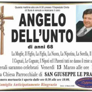Commozione a Veroli dove era nato e a Isola Liri dove gestiva un bar nella frazione Selva, per la morte di Angelo Dell'Unto. Aveva 68 anni. I funerali saranno celebrati oggi pomeriggio, alle ore 15, presso la chiesa della frazione San Giuseppe Le Prata di Veroli. Ai familari le condoglianze dalla redazione del nostro sito.