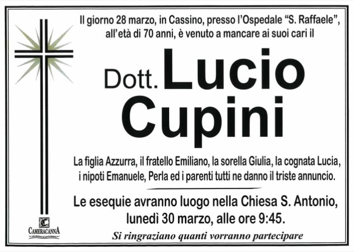 Del cugino e collega Giovanni Lanzi: “Ciao Lucio. Ti voglio ricordare così. In una serata spensierata di tanti anni fa. Ti voglio ricordare per quello che sei sempre stato per la nostra famiglia, un inguaribile simpaticone. Il fratellone di Emiliano Cupini e Giulia Cupini. Per me un cuginone che sapeva esaltarsi al momento opportuno trasmettendo sempre energia positiva. Sei stato un grande batterista, per tutti noi eri il Ringo Starr incontrastato. La musica d'altronde era uno dei tuoi grandi amori. Come lo Sport, una passione incontrastata per la Juventus e il Frosinone. Tifosissimo di calcio, amante dello sport a tutto tondo. Non c'erano situazioni, risvolti, aneddoti sportivi che ti siano stati sconosciuti. Professionalmente sei stato un medico eccellente, scrupoloso, attento, studioso. Te ne sei andato via troppo presto, Lucio. Una discesa improvvisa, il buio, non ce l'hai fatta a rialzarti stavolta. Lassù ritroverai mamma Teresa e papà Napoleone, gli zii, i nonni. Abbracciali tutti. Porta da loro la tua simpatia. Ciao Lucio…”.