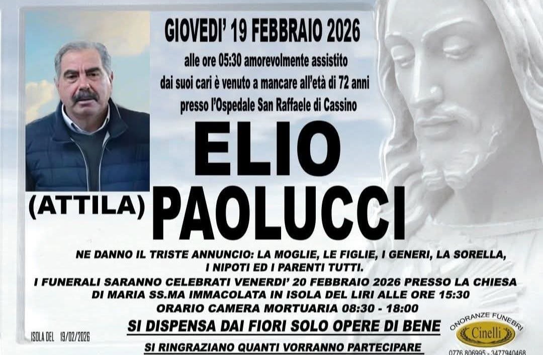 ISOLA LIRI - GRANDE COMMOZIONE PER LA MORTE DI ELIO PAOLUCCI