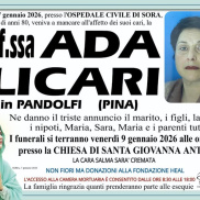 I funerali saranno officiati alle ore 11 di domani – venerdì 9 gennaio – nella chiesa Santa Giovanna Antida di Sora.