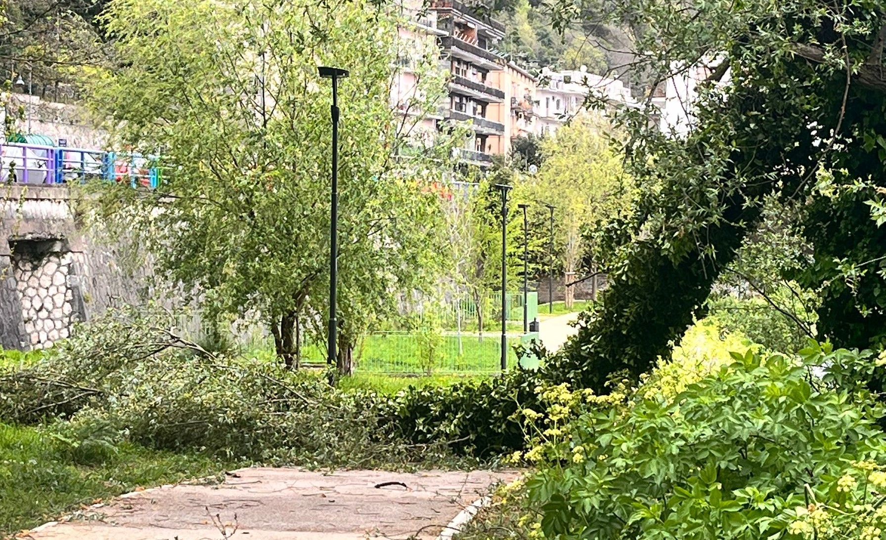 "Un grosso ramo si è abbattuto all’interno della villa comunale di Cassino, finendo sul percorso pedonale e ostruendo il passaggio. L’episodio riporta l’attenzione sulle condizioni del verde pubblico cittadino".