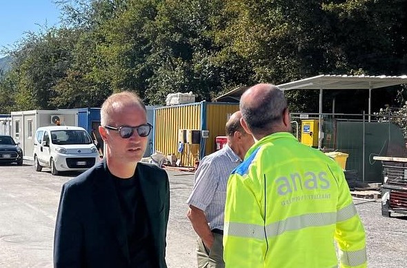 Sulla Sora - Cassino come se non bastasse la perdurante chiusura della galleria di Atina sulla strada a scorrimento “lento” ma con “veloci” passerelle di politici. (Nella foto l'assessore regionale Pasquale Ciacciarelli durante il suo ultimo sopralluogo).