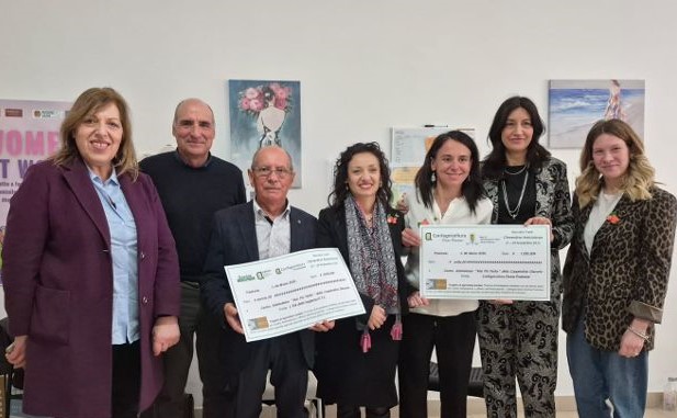 Consegnati, da parte di Confagricoltura Donna Frosinone, 4.000 euro al Centro Antiviolenza "Mai Più Ferite" della Cooperativa Diaconia. Una cifra che rappresenta il ricavato delle iniziative che hanno raggiunto quota 5.050 euro, frutto della sinergia tra la campagna "Clementine Antiviolenza" di Confagricoltura Donna Frosinone e il sostegno dell'ETS "L'Età della Saggezza", che ha donato quanto raccolto con il 5 x mille.