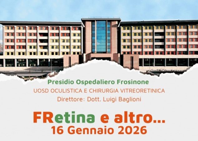 Domani, Venerdì 16 gennaio, a partire dalle ore 8:30, si terrà a Ferentino una nuova edizione del convegno “FRetina e altro…”, appuntamento scientifico di rilievo dedicato all’aggiornamento professionale in oftalmologia, con un focus specifico sulle patologie retiniche e sulla chirurgia vitreoretinica.
