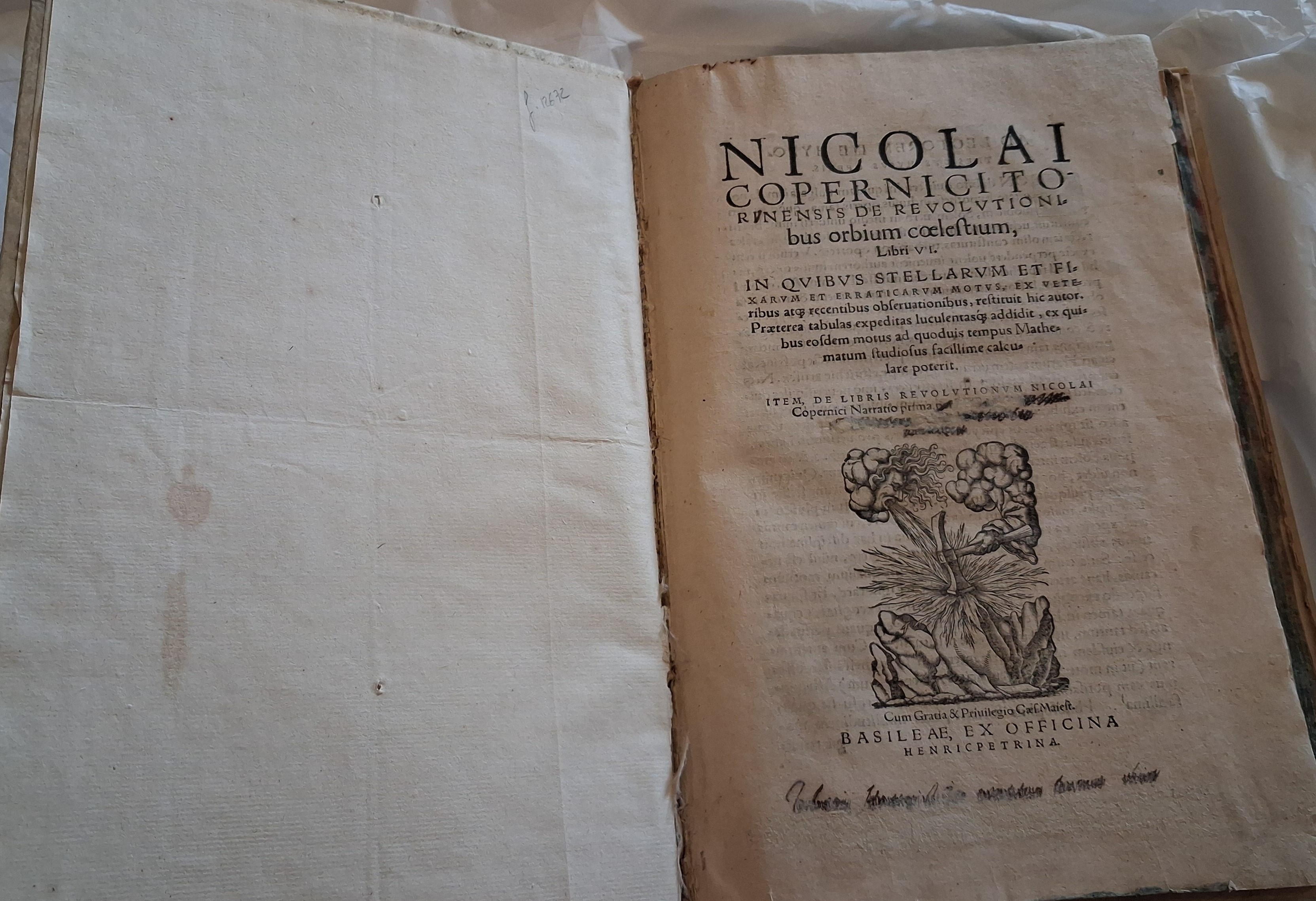 Sono due carabinieri in borghese del Reparto Operativo del Comando Carabinieri Tutela del Patrimonio Culturale. Hanno una consegna da effettuare. È un pacco speciale. Un involucro trasparente. All’interno, avvolto nella carta velina, un libro. È un testo antico. Un esemplare dell’edizione del “De revolutionibus orbium coelestium” di Niccolò Copernico, stampato a Basilea nel 1566.
