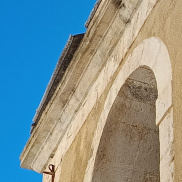 Una lastra piuttosto ampia e pesante, sporge pericolosamente dal campanile della chiesa parrocchiale San Michele Arcangelo di Arpino. Forse di marmo, potrebbe crollare sul luogo di culto.