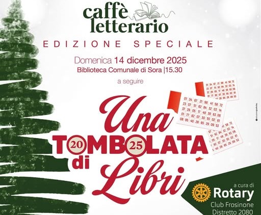 La Biblioteca Comunale di Sora invita lettrici e lettori all’edizione speciale natalizia del Caffè Letterario, realizzata in collaborazione con il Rotary Club Frosinone, partner del progetto La lettura per tutti – Sora Città che legge 2025.