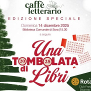 A seguire, una speciale Tombolata di Libri: una cabala letteraria che si trasformerà in una coinvolgente sfida tra lettori, con tanti libri in premio. L’iniziativa vede il supporto del Rotary Club Frosinone e la partecipazione dei ragazzi dell’Interact Frosinone – Istituto San Bernardo Casamari.