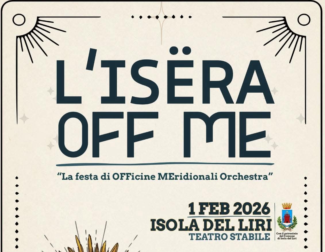 A rendere l’evento ancora più simbolico, un premio speciale: in palio un concerto gratuito di Officine Meridionali Orchestra, per portare questa esperienza in un nuovo luogo e continuare a far viaggiare le radici. “L’Isëra OFF ME” non è solo un appuntamento in calendario. È una dichiarazione d’intenti. Un modo per dire che il Sud non è fermo, non è folklore da cartolina, ma una cultura viva che si rinnova senza rinnegarsi. Isola del Liri, per un giorno, diventa spazio di incontro, danza e identità condivisa. Un invito a riconoscerci, insieme, nel suono profondo delle nostre radici e nel futuro che sanno ancora generare.
