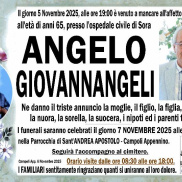 Si è spento ieri Angelo Giovannangeli. Sulla pagina social del Comune di Campoli Appennino è stato pubblicato questo messaggio: