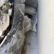 Gli è esploso uno pneumatico, ha perso il controllo della sua Mercedes ed è finito contro il poderoso muro di recinzione della cartiera “Battestone” lungo via Napoli a Isola Liri.