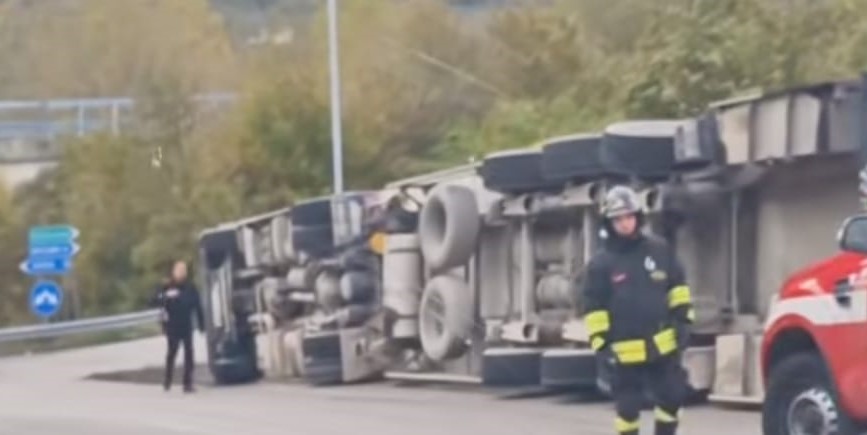SUPERSTRADA - CAMION SI RIBALTA A RIDOTTI
