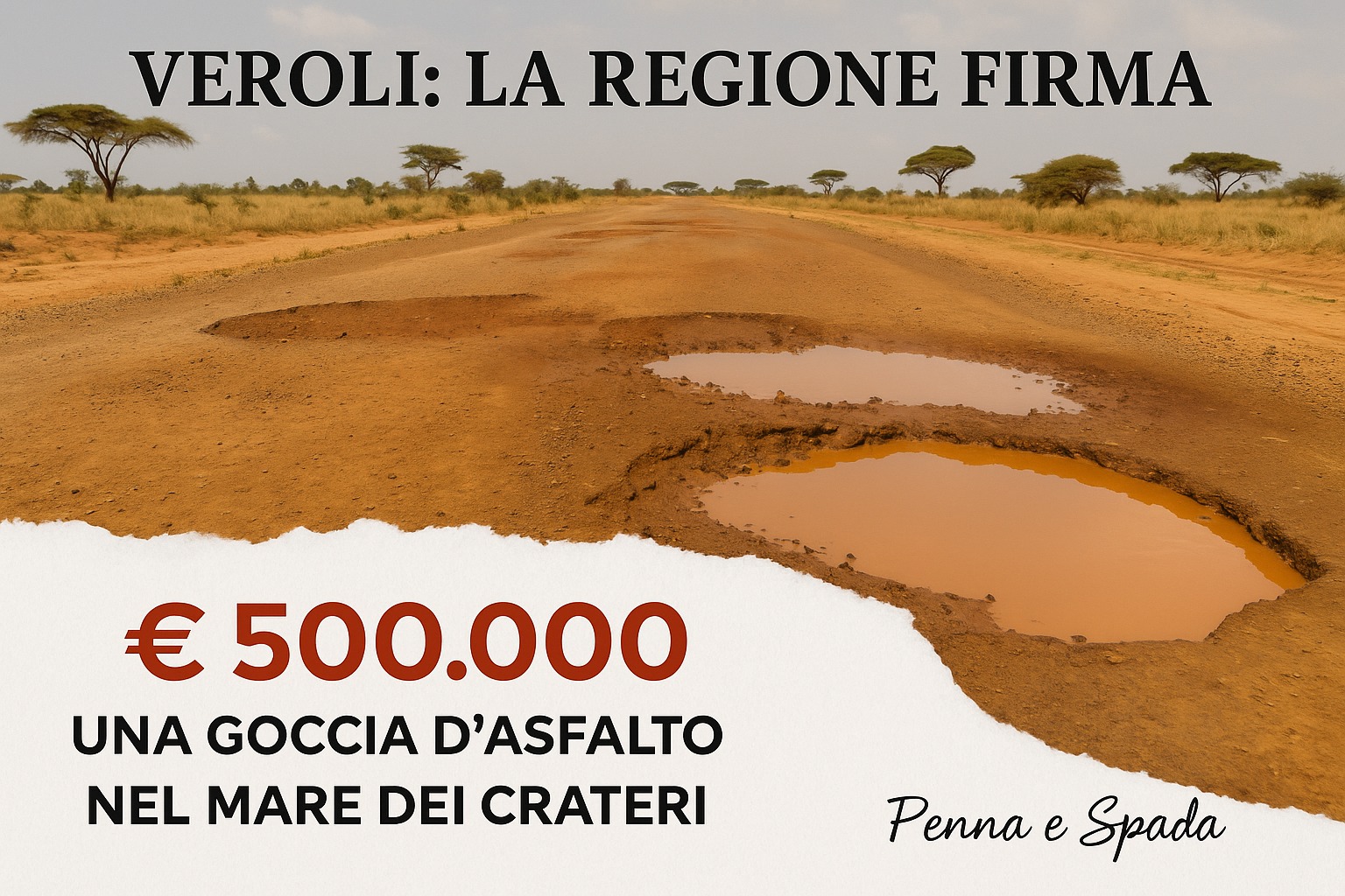 “La Regione firma.” Così recita la locandina ufficiale del Comune di Veroli, che accompagna il finanziamento regionale da 500.000 euro per la manutenzione straordinaria della viabilità comunale. Peccato che, a leggere le carte, più che un finanziamento sembri una diagnosi clinica del dissesto.