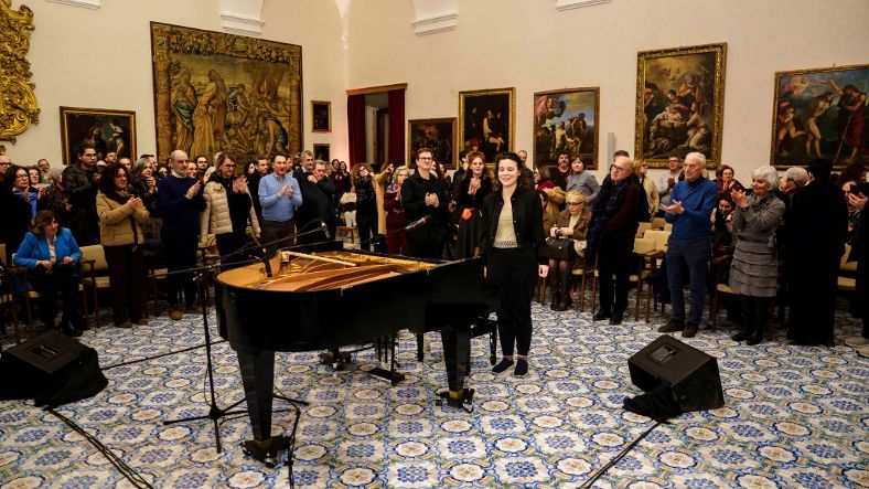 Un protagonismo tutto al femminile: ad aprire il programma, nel pomeriggio di sabato, è stato infatti il concerto di Frida Magoni Bollani, ospitato in un Salone di San Benedetto gremito in ogni ordine di posto. Proprio tra le mura millenarie dell’Abbazia, luogo simbolo di Pace, la giovane artista, ha scelto di inaugurare il suo tour 2026, che la porterà nei principali teatri italiani: una scelta dal forte valore simbolico, capace di unire spiritualità, arte e contemporaneità. Con un repertorio che ha spaziato da Lucio Dalla a Franco Battiato, dal jazz al soul, Frida Magoni Bollani – non vedente dalla nascita – ha incantato il pubblico con una voce potente e raffinata, testimoniando attraverso la musica e il dialogo diretto con gli spettatori una storia personale di talento, sensibilità e autentica forza interiore.