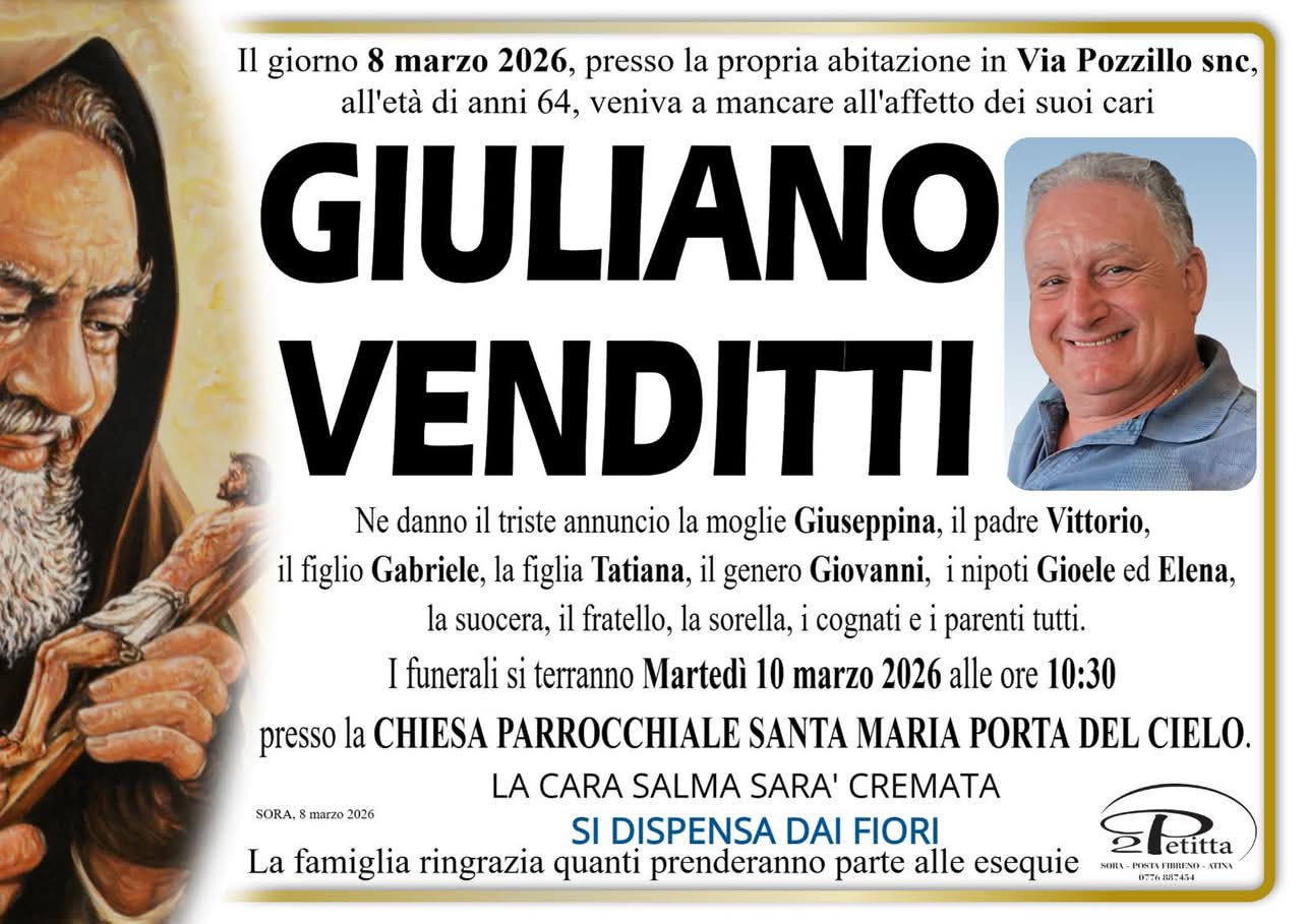 Grande commozione a Sora per la prematura scomparsa di Giuliano Venditti. Fondatore della storica pizzeria della Selva di Sora che porta il suo nome e per questo, oltre ad essere stimato, era conosciutissimo.