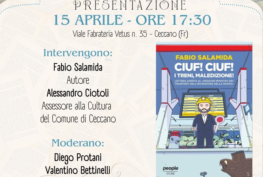 Si svolgerà a Ceccano oggi, mercoledì 15 Aprile alle ore 17.30 presso il caffè letterario Sinestesia la presentazione del libro di Fabio Salamida "Ciuf! Ciuf! " edito da People.