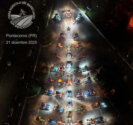 Settanta trattori schierati in piazza Papa Giovanni Paolo a Pontecorvo, posizionati uno accanto all’altro per formare un gigantesco albero di Natale che all’improvviso, con l’accensione simultanea dei motori, ha squarciato il buio con la luce dei fari. Lo spettacolo, ideato dal giovane imprenditore Tommaso Del Signore e organizzato dal comitato direttivo della Associazione Fiera Agricola del Basso Lazio, ha richiamato in piazza centinaia di curiosi, soprattutto famiglie con bambini.