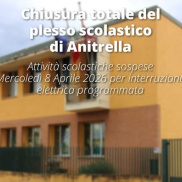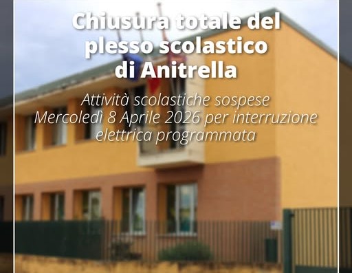 Il Comune informa la cittadinanza che, con Ordinanza numero 10 del 07 aprile 2026, è stata disposta per domani, mercoledì 8 aprile 2026 la chiusura totale della scuola dell’infanzia e della sezione Primavera di Anitrella.
