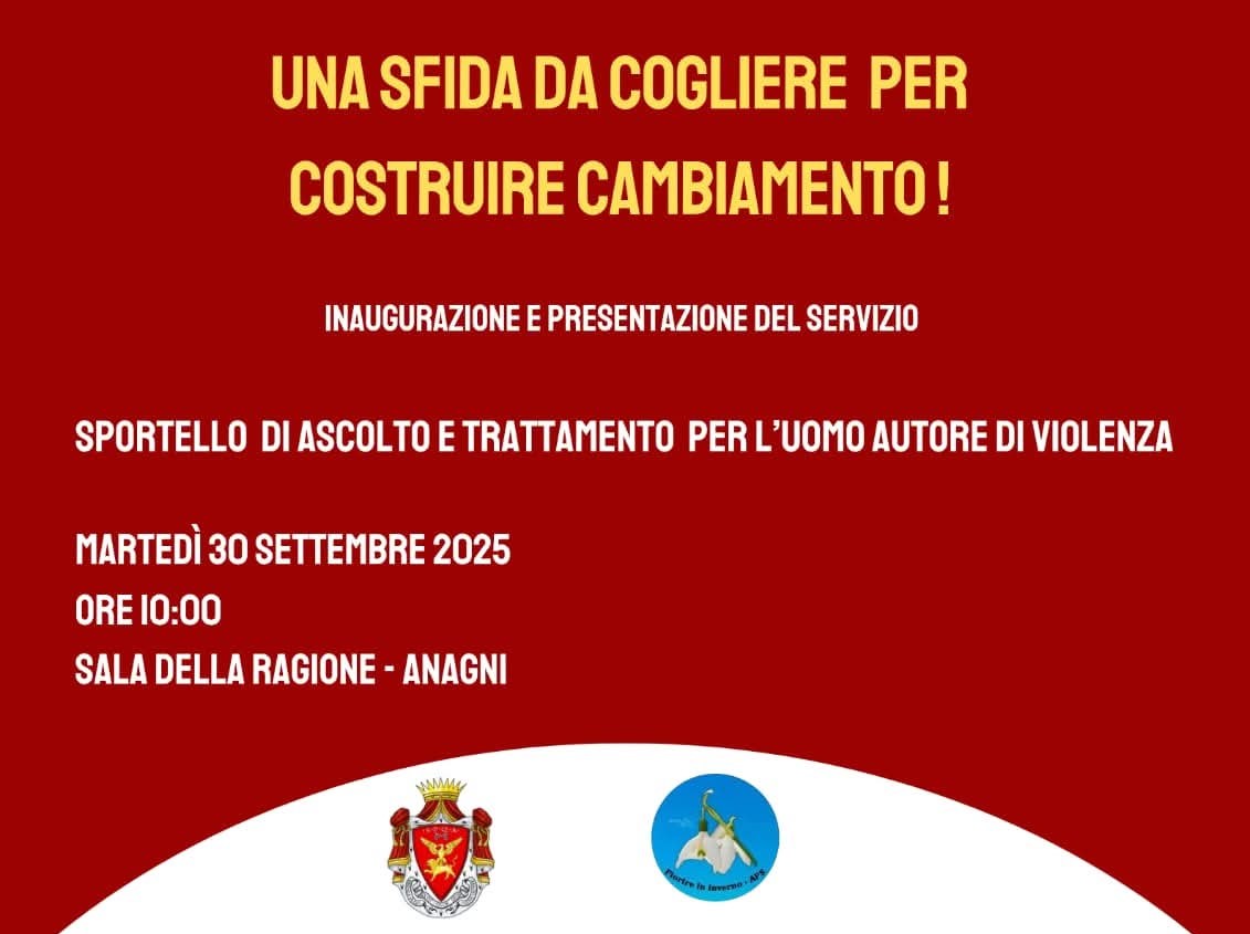 Il Sindaco di Anagni, l’Avv. Daniele Natalia, ha aggiunto: “Questo sportello rappresenta una sfida culturale e sociale che la nostra comunità ha il dovere di affrontare con serietà e responsabilità. La lotta alla violenza di genere passa anche attraverso il coraggio di riconoscere che il reinserimento e la rieducazione degli autori di violenza sono strumenti indispensabili per costruire una società più sicura. Non si tratta di giustificare, ma di prevenire nuove tragedie offrendo percorsi di recupero che possano spezzare la catena della violenza.”