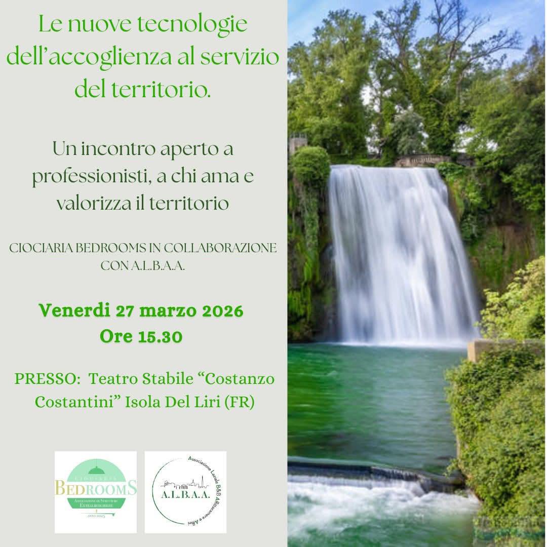 L’iniziativa, promossa da Ciociaria Bedrooms in collaborazione con A.L.B.A.A., rappresenta un’occasione per approfondire strumenti e strategie capaci di rendere il territorio sempre più attrattivo e competitivo.