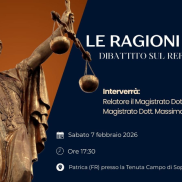 Fare Verde Patrica, gruppo organizzato di Fare Verde Provincia di Frosinone APS, in attuazione del proprio statuto e della propria missione civica, organizza per il 7 febbraio 2025 alle ore 17.30, presso l’agriturismo “La Tenuta del Campo di Sopra”, un incontro pubblico con Magistrati impegnati nel fronte per il NO al referendum.