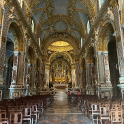 La dedicazione della Basilica, fortemente voluta dall’allora abate Desiderio – divenuto poi papa Vittore III – rappresenta una delle pagine più significative della storia medievale, alla quale presero parte numerose personalità di grande rilievo. L’artista Luca Giordano ne ha tramandato la memoria in un celebre affresco, oggi sostituito dalla “Gloria di San Benedetto” che accoglie i fedeli all’ingresso della Basilica.