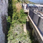 Più avanti transenne divelte, erbacce e i due piani dell’ecomostro ancora sbarrati. E, come se tutto ciò non bastasse, tombini pericolosi, cigli divelti e staccionate malferme.