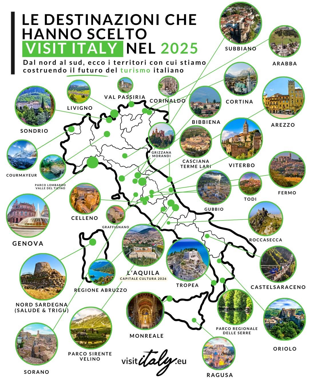 Si chiude un 2025 che, nel turismo italiano, segna una frattura netta con il passato. Non una stagione di slogan, ma di visione. La mappa diffusa da Visit Italy non celebra i soliti riflettori: accende luci nuove sul 99% del Paese che per anni è rimasto fuori dal racconto dominante.