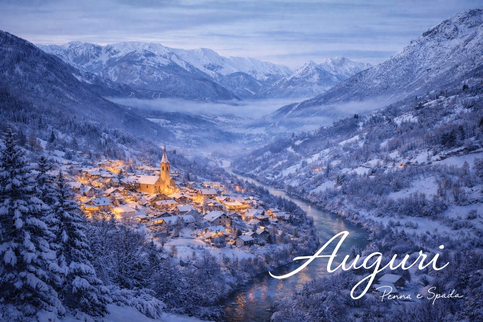 LA CARTOLINA - BUON NATALE CON LE MONTAGNE INNEVATE