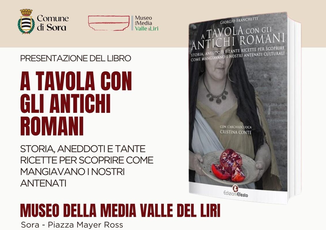 Domenica 19 aprile 2026, a partire dalle ore 11.00, presso il Museo della Media Valle del Liri di Sora, si terrà la presentazione del saggio “A tavola con gli antichi romani” dell’archeologo e divulgatore storico Giorgio Franchetti.