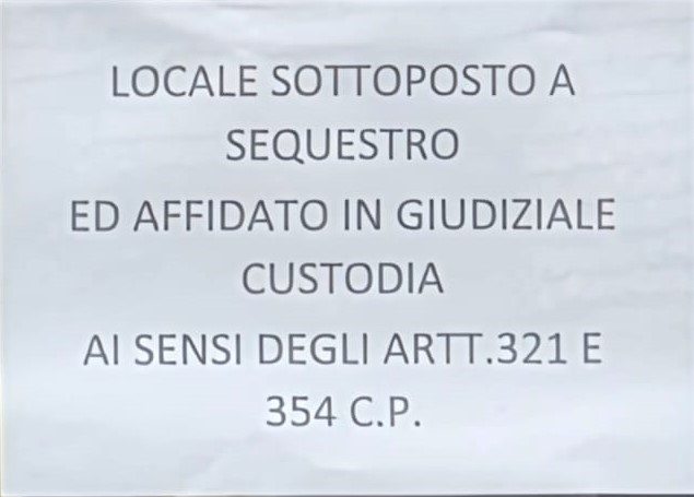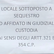E abbiamo fatto bene a non fare quel nome. La conferma arriva dal cartello affisso all’ingresso del locale che è stato chiuso (nella foto). Vi si legge: “Locale sottoposto a sequestro ed affidato in custodia…”. Poi sono indicati due articoli del Codice Penale: 321 e 354.