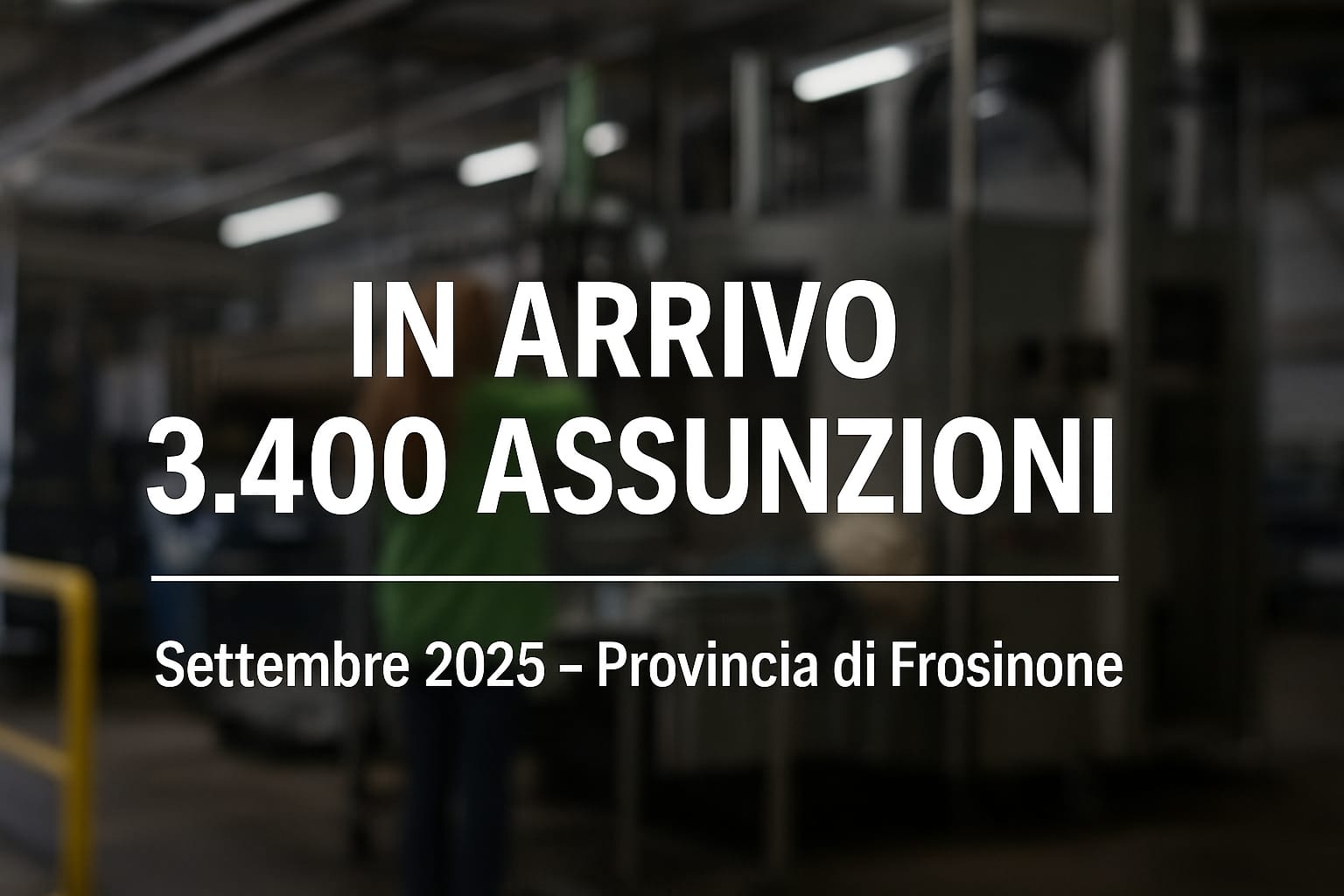 Il rapporto Excelsior di Unioncamere e Anpal prevede per il mese di settembre circa 3.400 nuove assunzioni nella provincia di Frosinone. Si tratta di un dato significativo, anche se in calo rispetto ad agosto, quando i contratti stimati erano 4.400.
