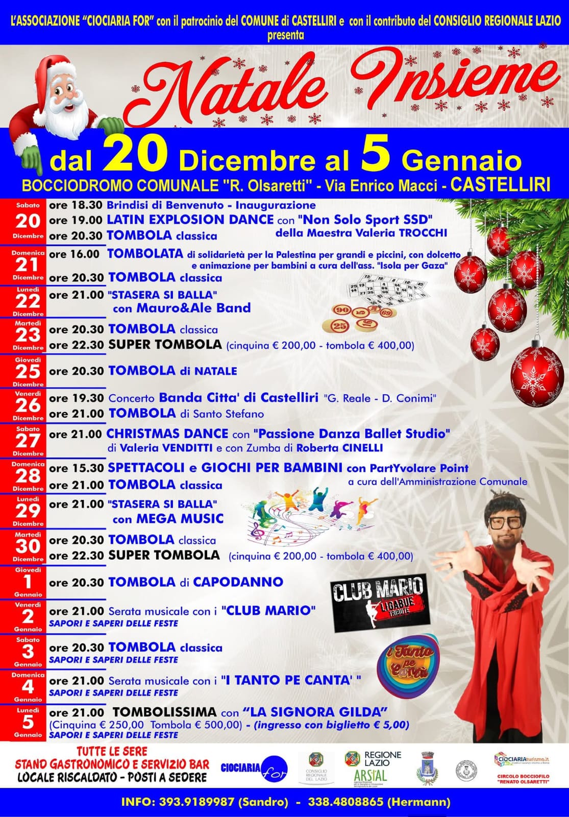 A Castelliri il Natale non è solo una festa: è un modo di stare insieme. Lo dimostra il nuovo programma di “Natale Insieme”, una rassegna che dal 20 dicembre al 5 gennaio trasforma il bocciodromo comunale in un luogo vivo, caldo, familiare.