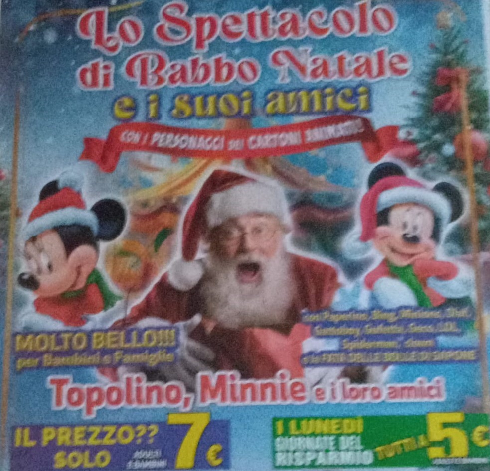 Lo spettacolo dura una sessantina di minuti, costa solo 7 euro, il lunedì promozione a 5 euro. I bambini potranno ammirare molti personaggi tra i quali Topolino, Minnie e tanti altri.