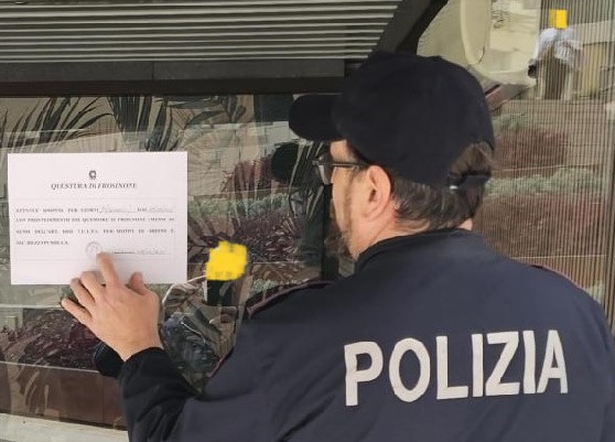 Il provvedimento è stato emesso dal Questore della Provincia di Frosinone, dott. Stanislao Caruso, dopo un’accurata istruttoria della Divisione Amministrativa e di Sicurezza.