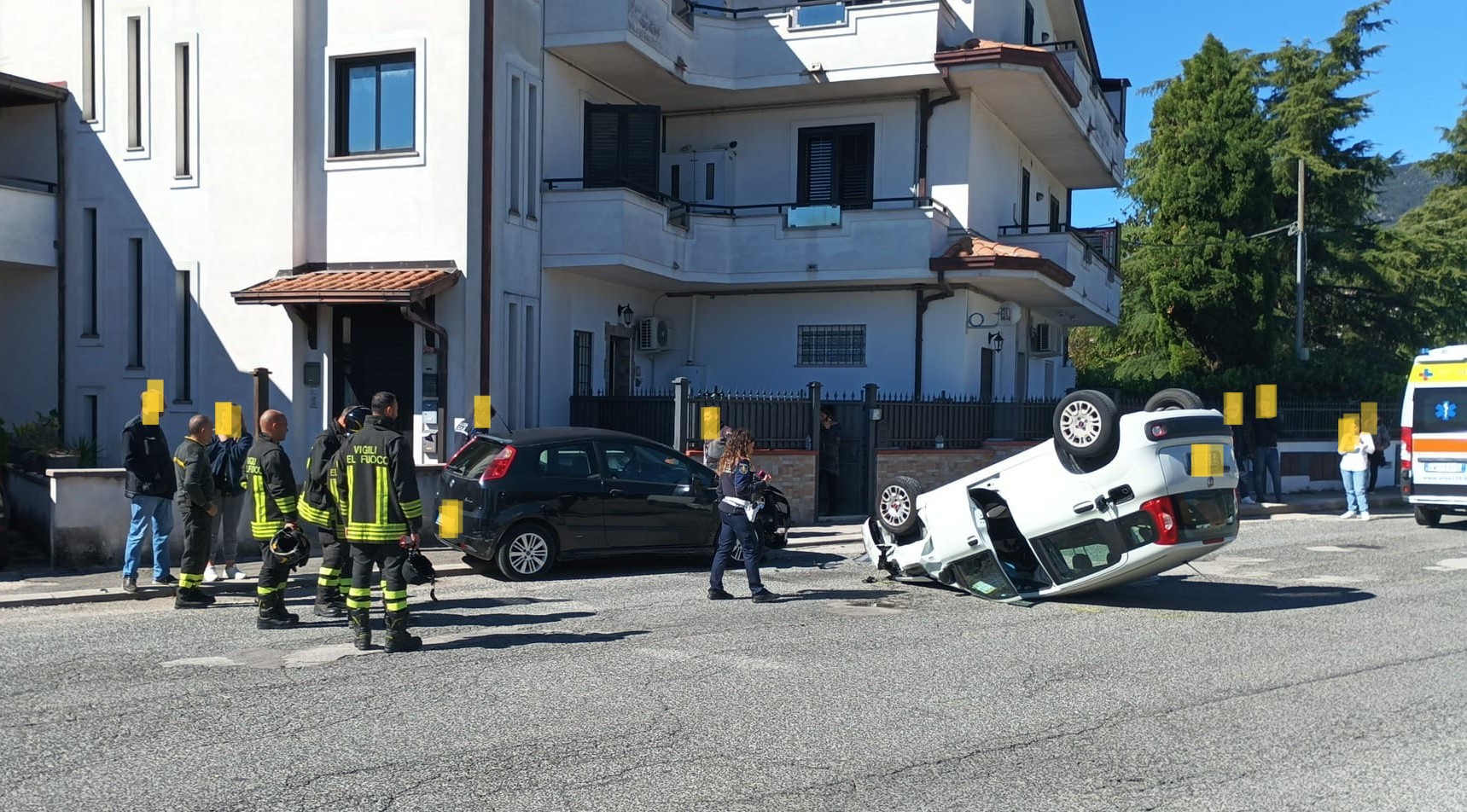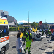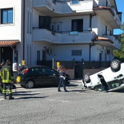 Ha perso il controllo della sua Fiat Panda, si è schiantata contro una Punto parcheggiata sul marciapiede che gli ha fatto da leva e si è ribaltata.