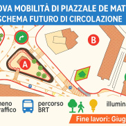 Presentato il nuovo schema futuro di circolazione di Piazzale De Matthaeis, cuore pulsante ma spesso caotico della mobilità cittadina. Il progetto rientra nel piano di “Riqualificazione urbanistica e ristrutturazione della mobilità di Piazzale De Matthaeis”, con l’obiettivo di ridurre il traffico e integrare il passaggio del Bus Rapid Transit (BRT), il sistema di trasporto rapido su corsia riservata attualmente in fase di realizzazione.