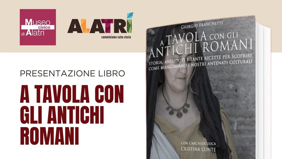 L’incontro sarà aperto dai saluti istituzionali del Sindaco di Alatri Maurizio Cianfrocca e del Consigliere delegato alla Cultura Sandro Titoni. Interverranno Giorgio Franchetti, autore del volume, Manuela Cerqua, direttrice del Museo Civico di Alatri, e Cristina Conte, archeocuoca e collaboratrice del libro per la parte dedicata alla ricostruzione delle ricette antiche.