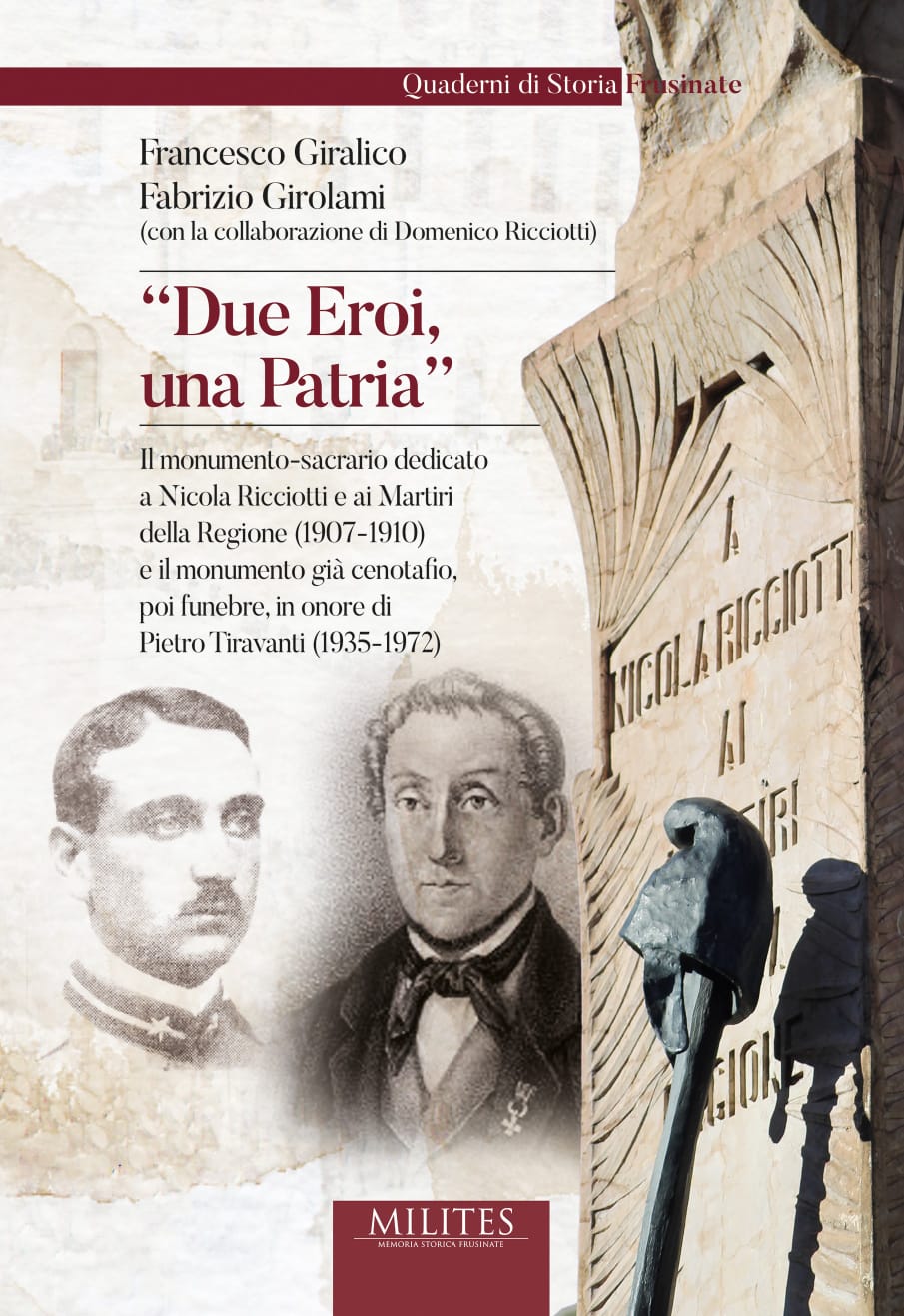 Venerdì 24 aprile 2026, dalle ore 18, presso il Teatro Vittoria in Via Giovanni Amendola a Frosinone, si terrà la presentazione della monografia di Francesco Giralico e Fabrizio Girolami, scritta in collaborazione con Domenico Ricciotti, dal titolo «Due Eroi, una Patria. Il monumento-sacrario dedicato a Nicola Ricciotti e ai Martiri della Regione (1907-1910) e il monumento già cenotafio, poi funebre, in onore di Pietro Tiravanti (1935-1972)», pubblicata nella serie Milites – Memoria Storica Frusinate e stampata dalla Editrice Frusinate.