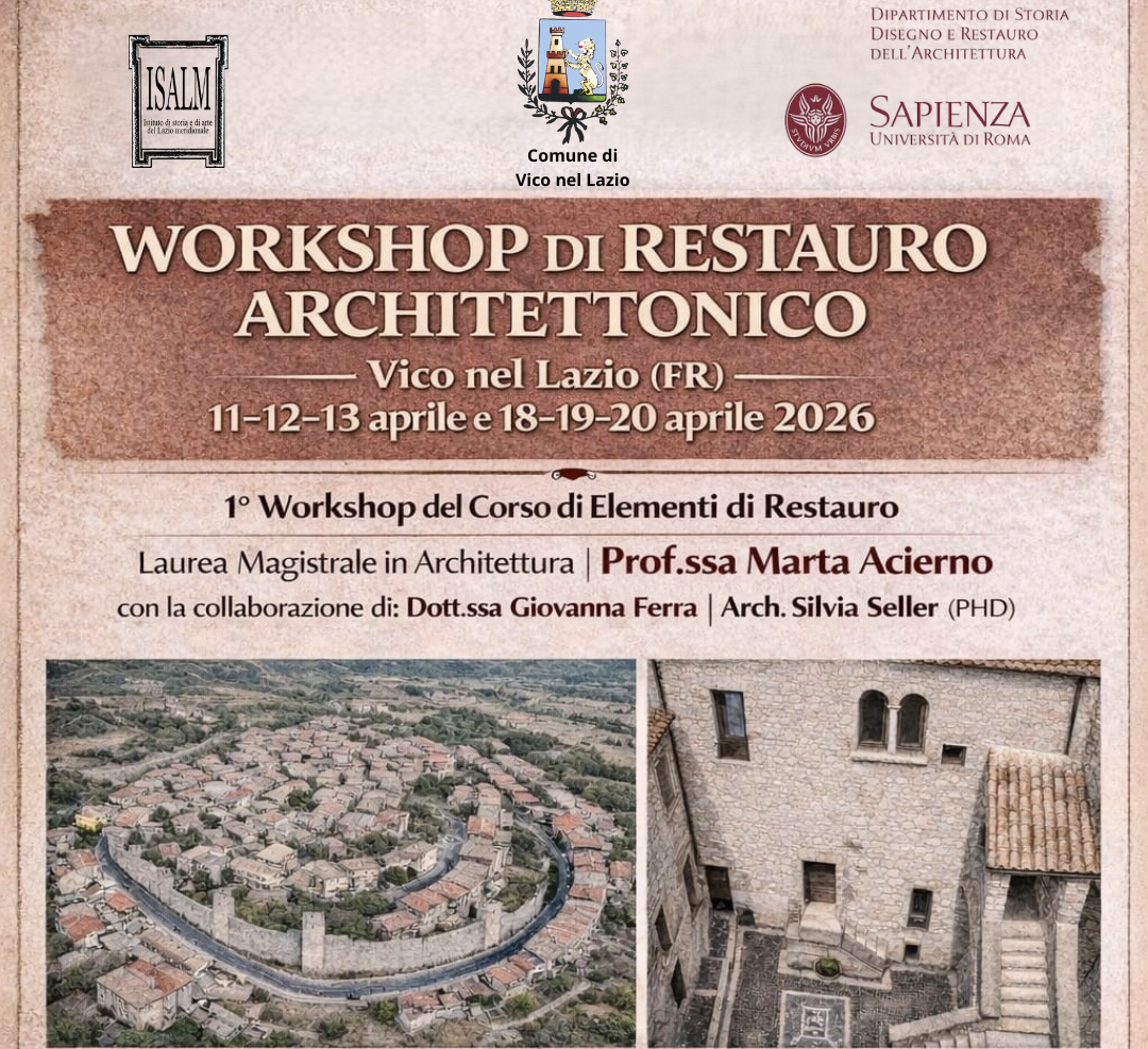 Il Comune di Vico nel Lazio è lieto di annunciare l’avvio di una prestigiosa collaborazione con la Facoltà di Architettura della Sapienza Università di Roma, che porterà nel borgo il Workshop di Restauro del Corso Magistrale in Architettura, coordinato dalla prof.ssa Marta Acierno.