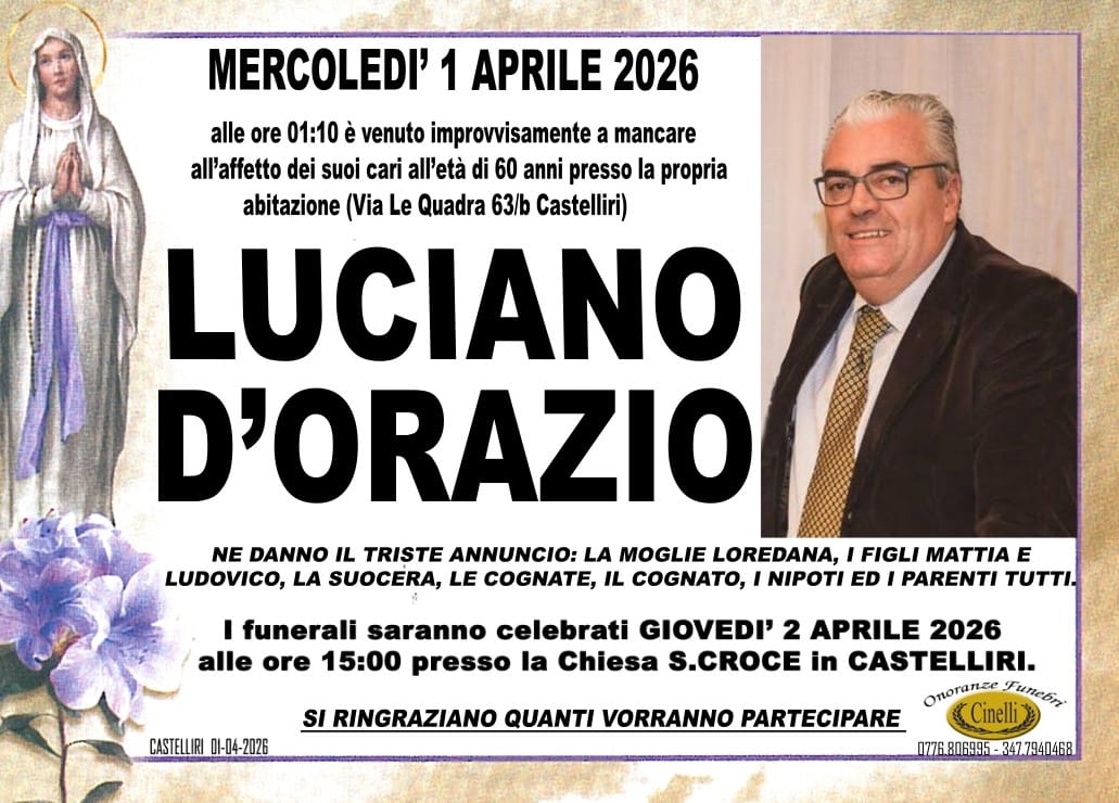 CASTELLIRI - LUCIANO D'ORAZIO STRONCATO DA UN MALORE