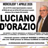 AGGIORNAMENTO - I funerali saranno officiati domani, 2 Aprile, alle ore 15, presso la Chiesa Parrocchiale di Santa Croce a Castelliri.